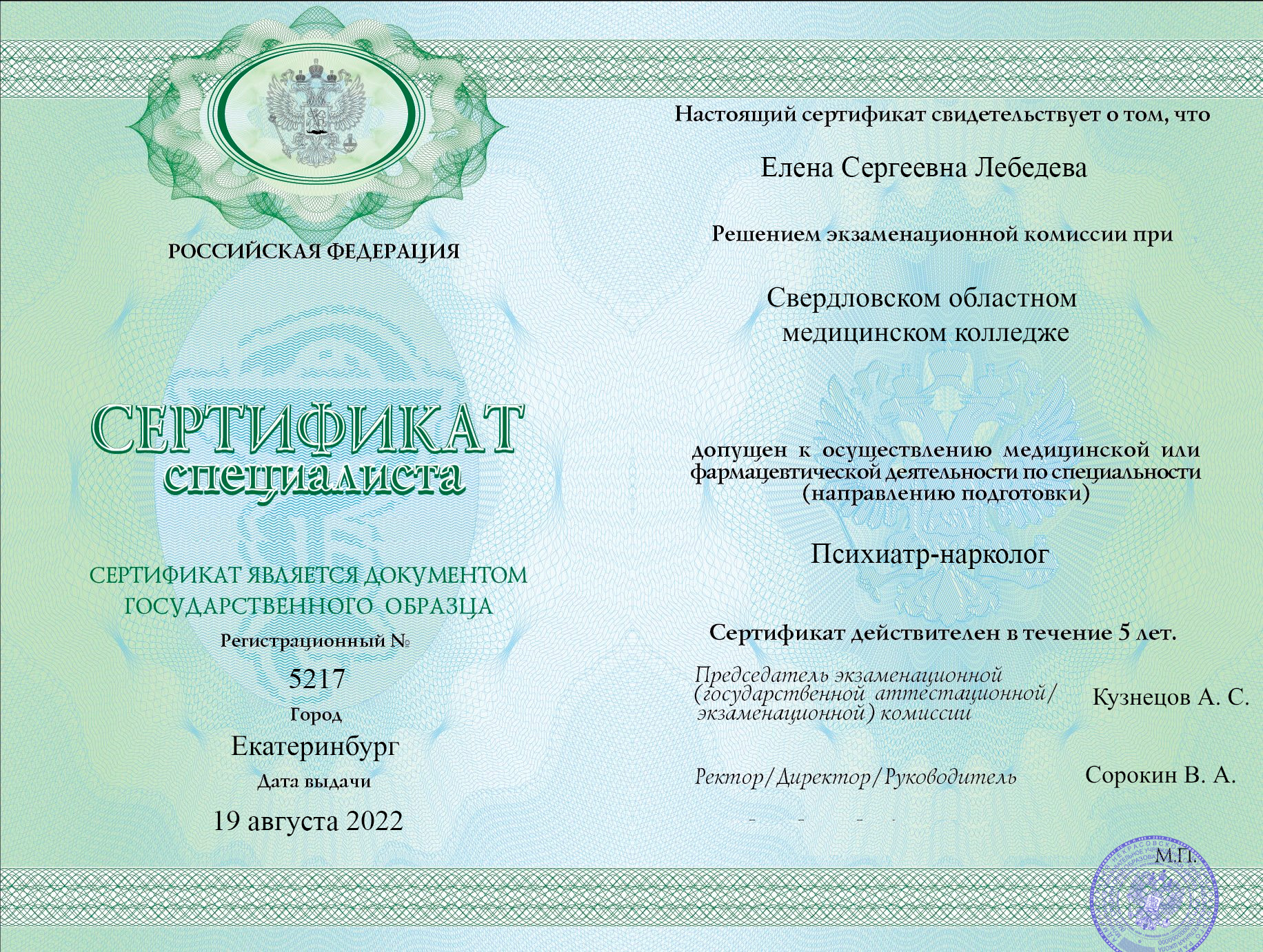 Елена Сергеевна Лебедева врач нарколог клиники доктора Стукаловой в Новой Отрадовке